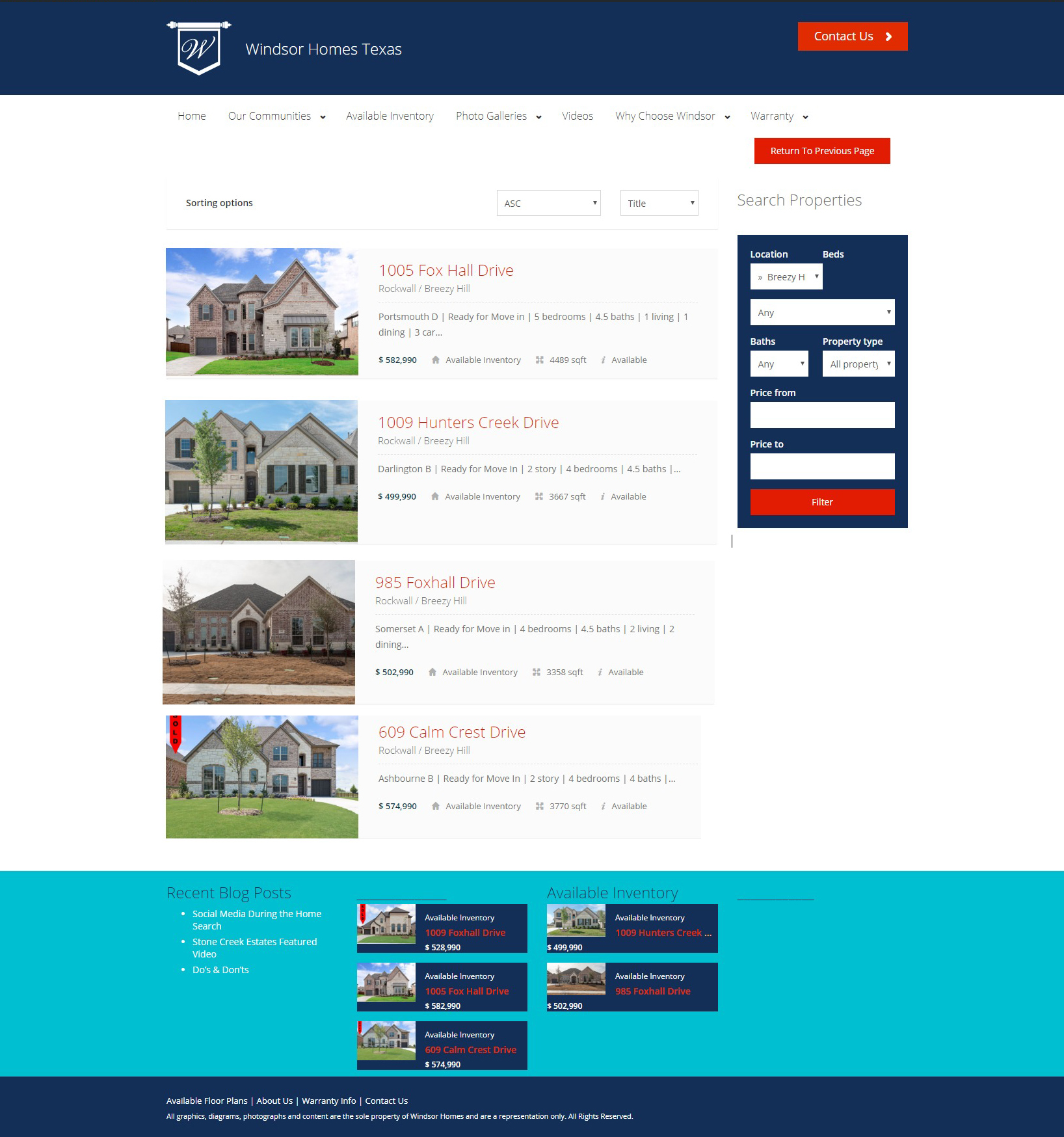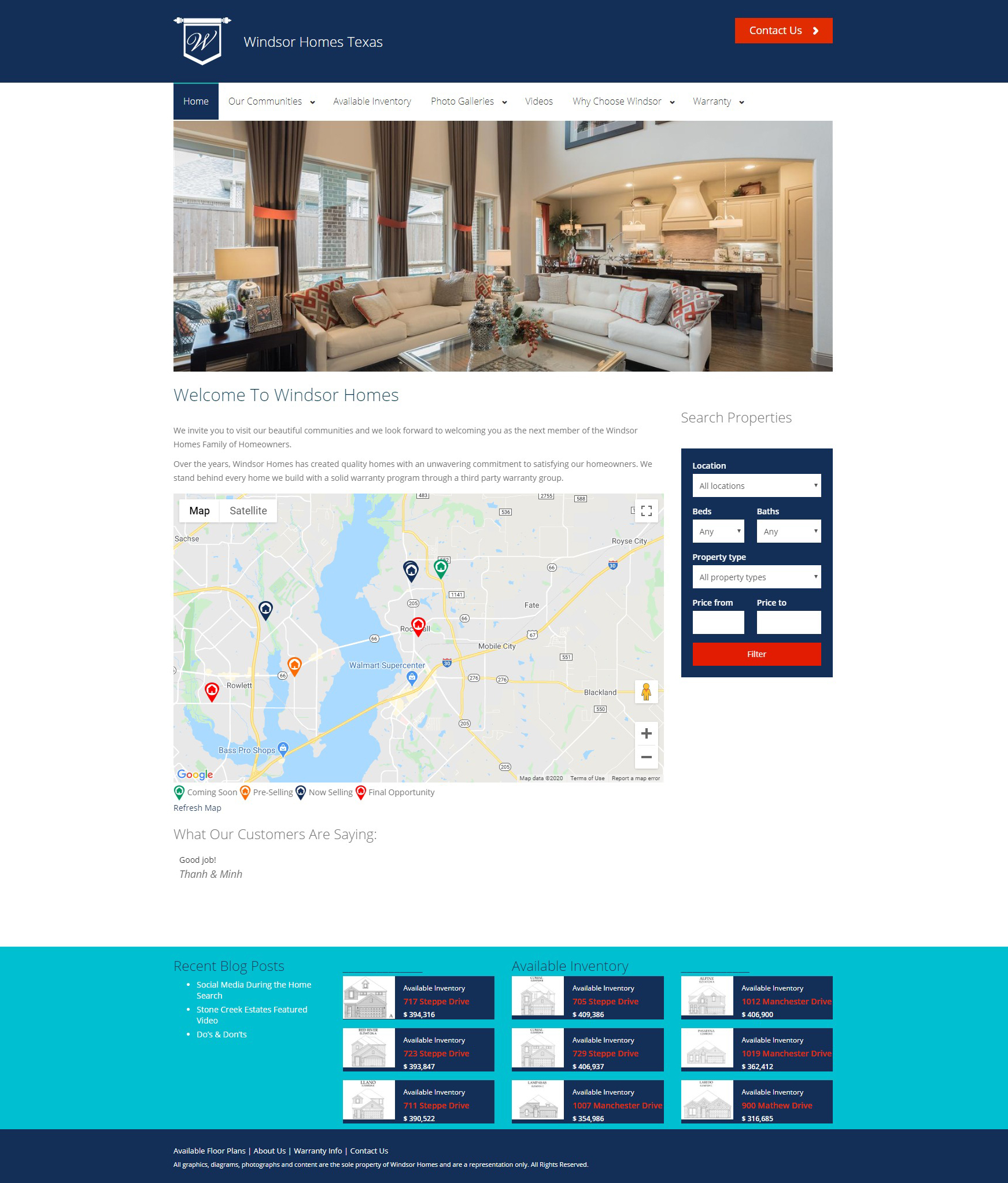 Windsor Homes selected ASTRALCOM because of their award-winning website design experience in the homebuilder industry and their depth of knowledge in the homebuilder/home buyer market.